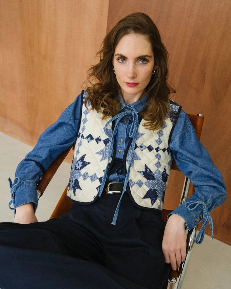 Top marine texturé en coton bio - navy ada top