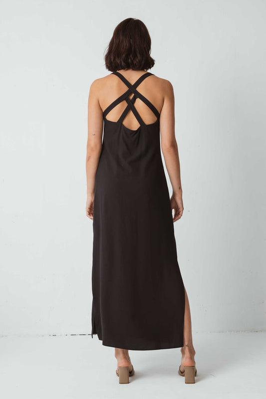 A RENVOYER - Robe longue fendue noire en ecovero - vestido klaudia black