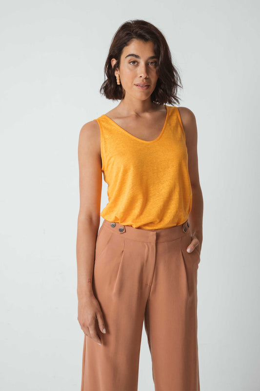 A RENVOYER - Pantalon tailleur marron en ecovero - pantalón ilia toffee